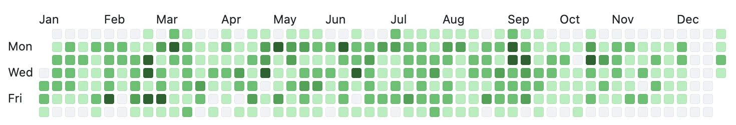 These aren’t numbers I’m trying to optimize for, but it’s interesting to see how they evolve over time. I didn’t expect to code more in the year I have a newborn to take care of.