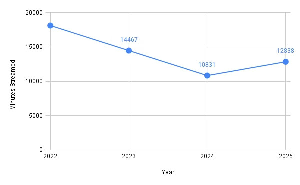 I streamed 12800 minutes, 18% more than last year. I wasn’t anticipating that.